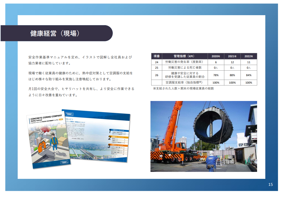 コンクリートコーリング社が発行した「People Fact Book 2023」は、ISO30414をガイドラインに過去3年間の重要な指標をまとめ、コンクリートコーリング社の ”Purpose、Dream、Belief”を定義した同社初の非財務情報開示となります。